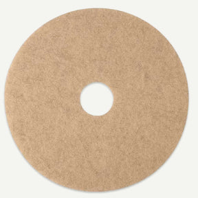The Concrete Protector's Natural Burnish Pad 3500 is designed to restore gloss and remove scuff marks from high traffic floors with hard finishes. Constructed with natural and polyester fibers in a non-woven web bonded with a resin system that permeates the entire pad, it delivers consistent burnishing performance for buffing and limited spray cleaning applications. The distinct tan color makes it easy to distinguish from other pads on the job site. Compatible with electric, battery, or propane machines operating at ultra high speeds of 1,500 RPM and above. Sold individually.