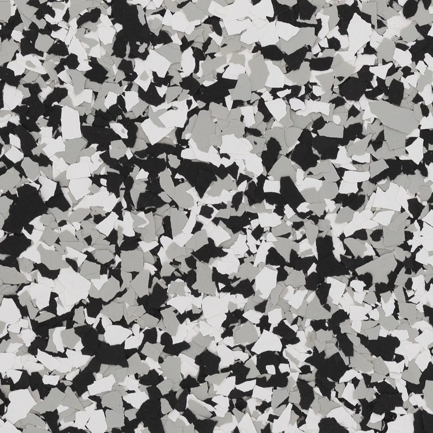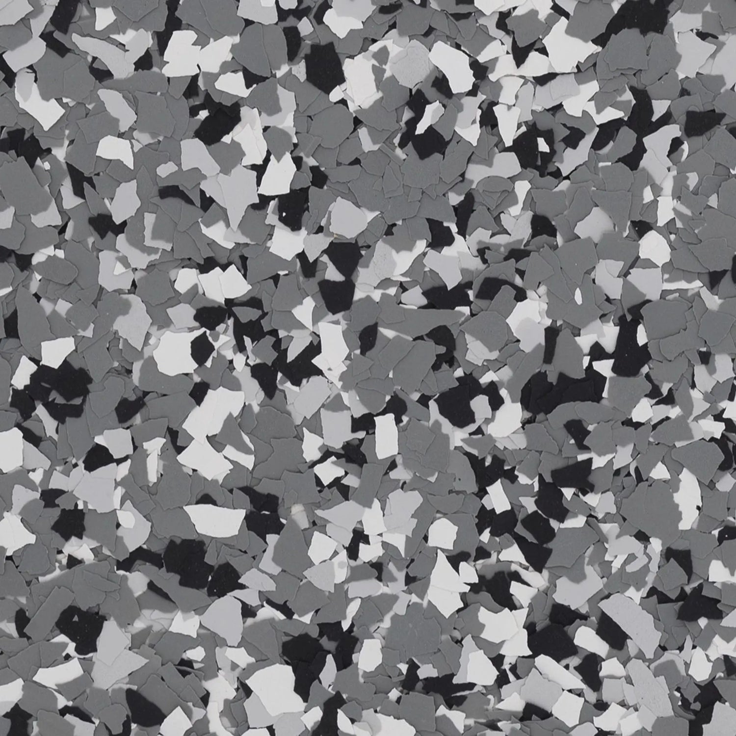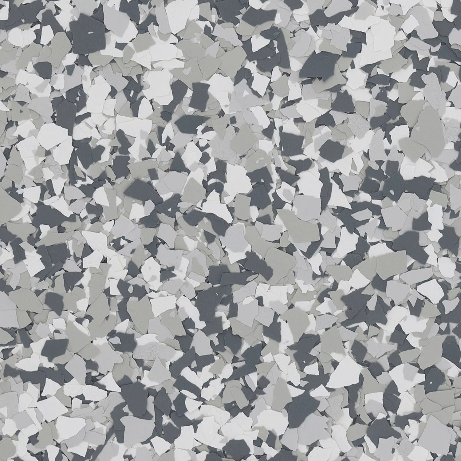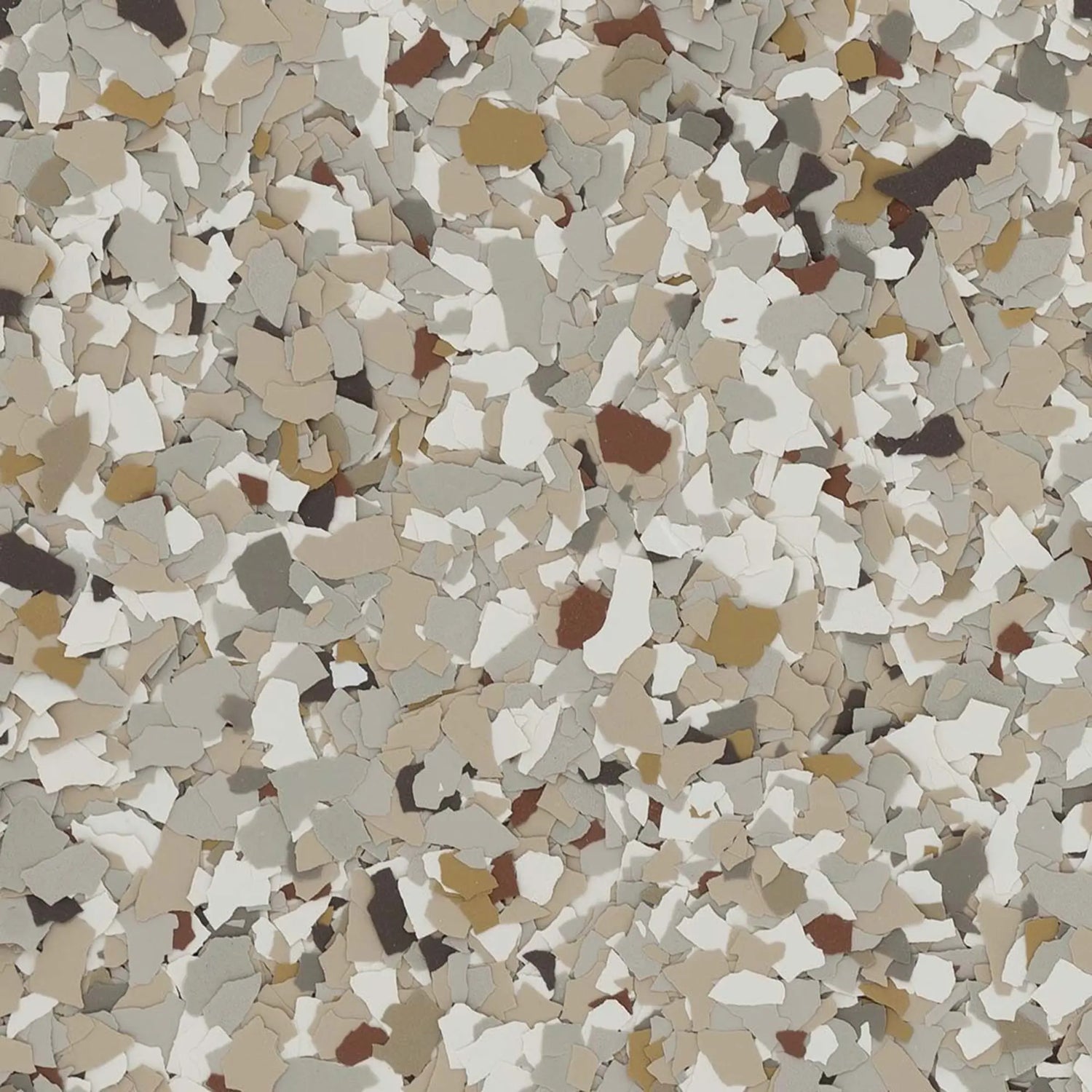 The flakes are colorfast and UV stable, non-flammable, and random in shape for a consistent, natural appearance across the full broadcast. Larger flake sizes are ideal for floors with more surface irregularities, as they provide greater hide of pitting and cracks.