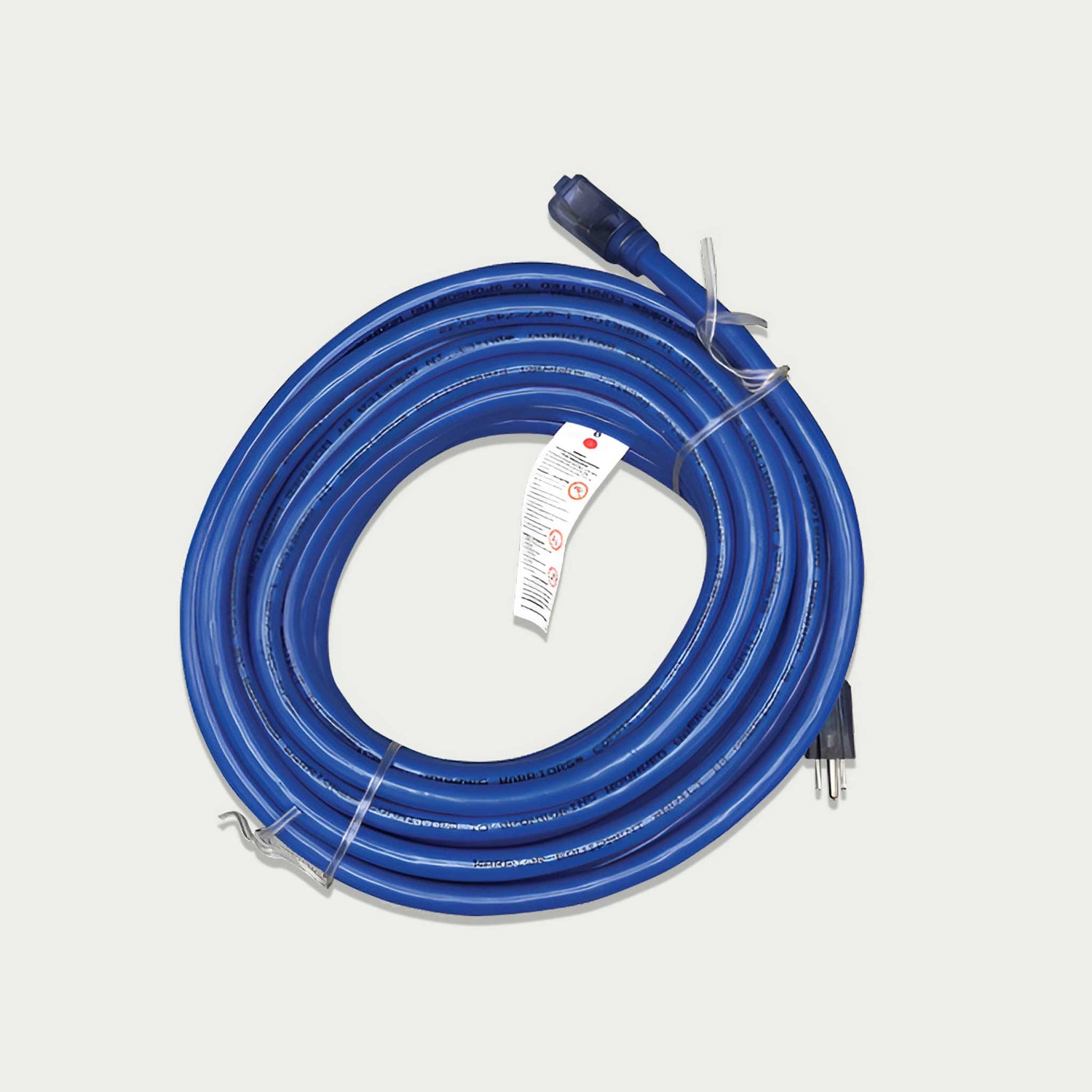 Each of the three conductors is made up of 104 strands of 30 AWG soft-drawn, annealed copper — keeping the cord flexible under full load rather than stiff and difficult to manage. The cold-weather PVC jacket stays pliable down to -40°F, so it works in unheated spaces without cracking or becoming brittle.