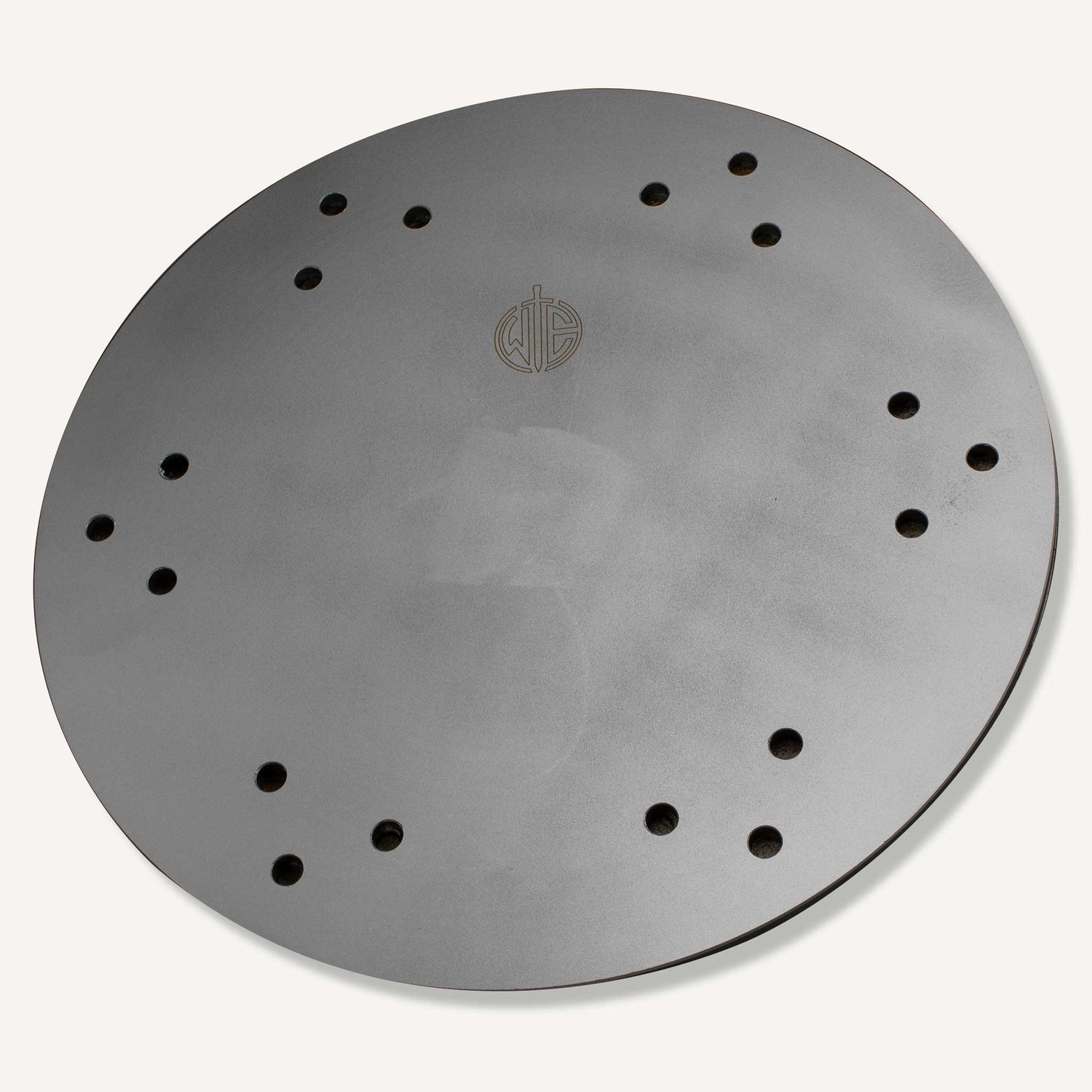 The Concrete Protector's Barbarian 290mm Steel Velcro Plate is a heavy-duty drive plate for Barbarian series concrete grinders. This steel plate features a Velcro surface for quick attachment and removal of polishing pads, sacrifice pads, and other Velcro-backed tooling. The solid steel construction provides durability and consistent contact pressure during grinding and polishing operations.