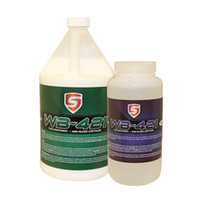 WB-421 is a glossy two-component, water-based polyurethane topcoat. WB-421 has excellent adhesion as well as abrasion resistance, and chemical resistance. WB-421 is low VOC and low odor and extremely user-friendly. WB-421 can provide wear resistant finish to your Sani-Tred or Graniflex project that will last for years.